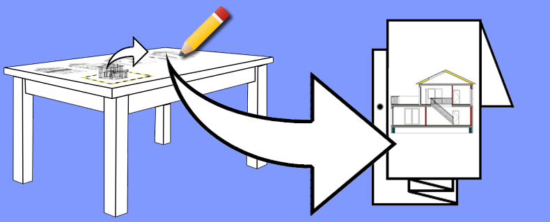 Rahmens, wie z.B. bei den Ansichten oder Schnitten oder als Darstellung des